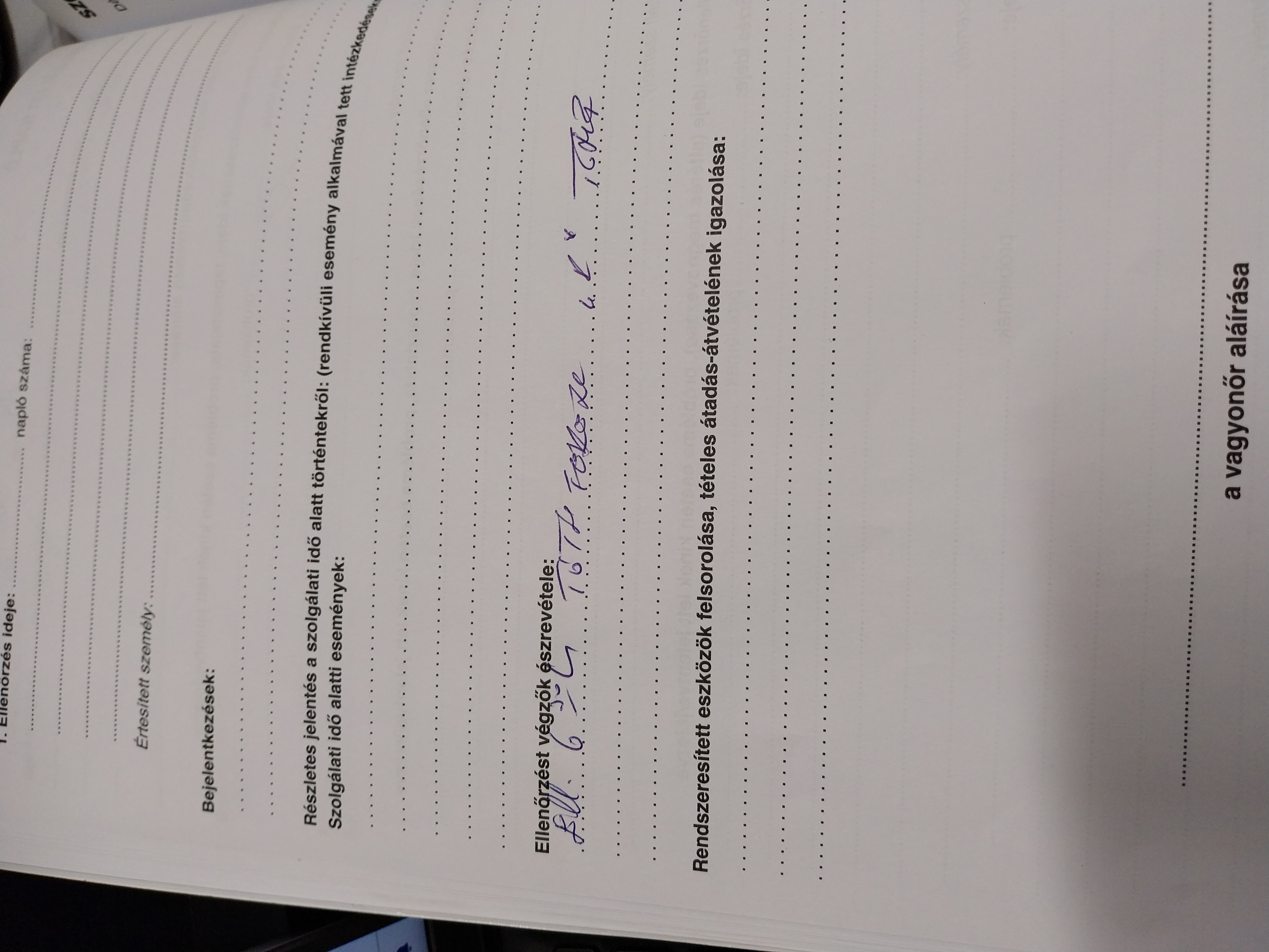 | Az őrzési helyre kiadott munkaeszközök megléte | Megfelel |
