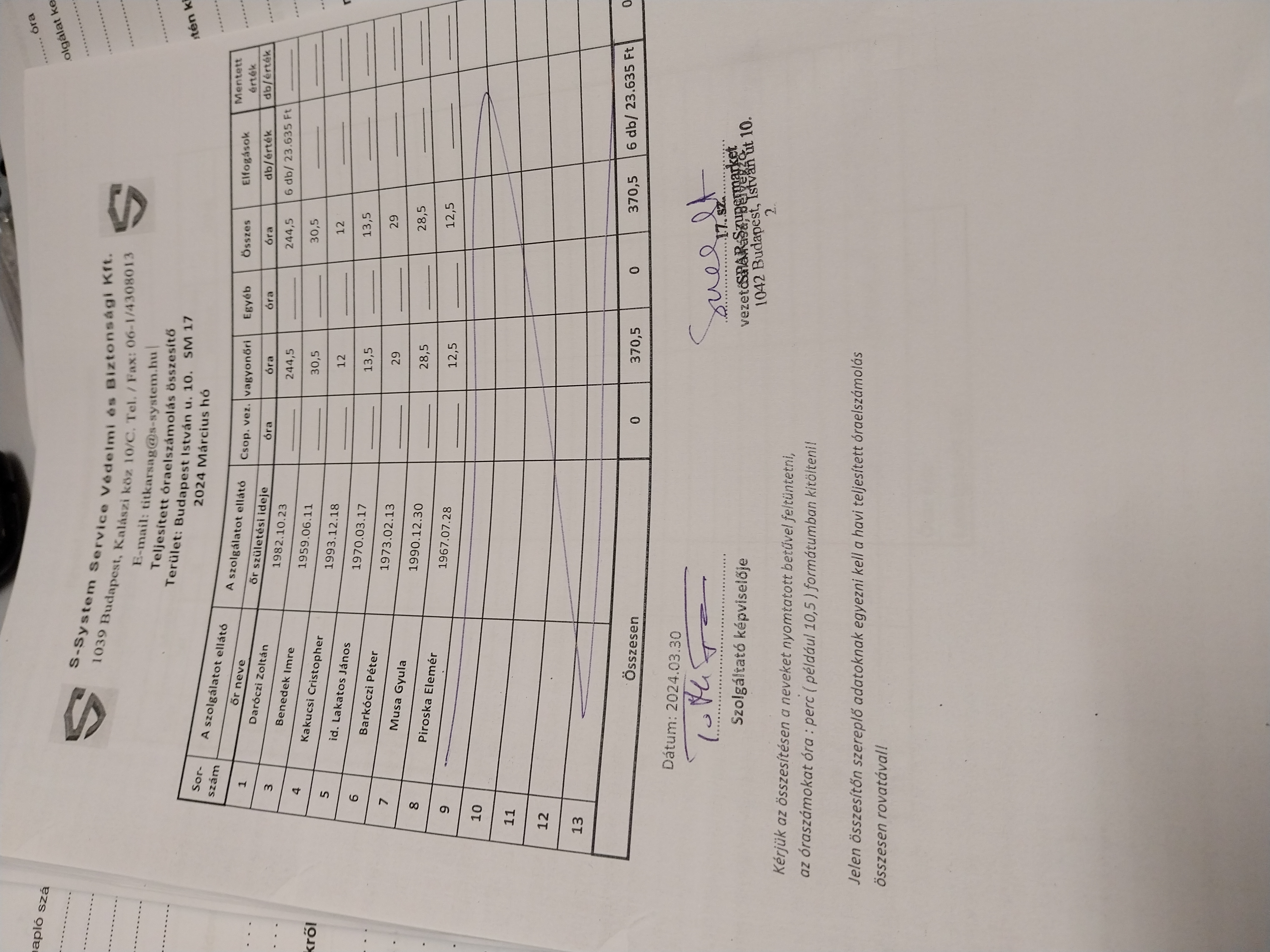 | Ellenőrzés helye | SPAR-SM 17 - Budapest IV. István u. 10. |
