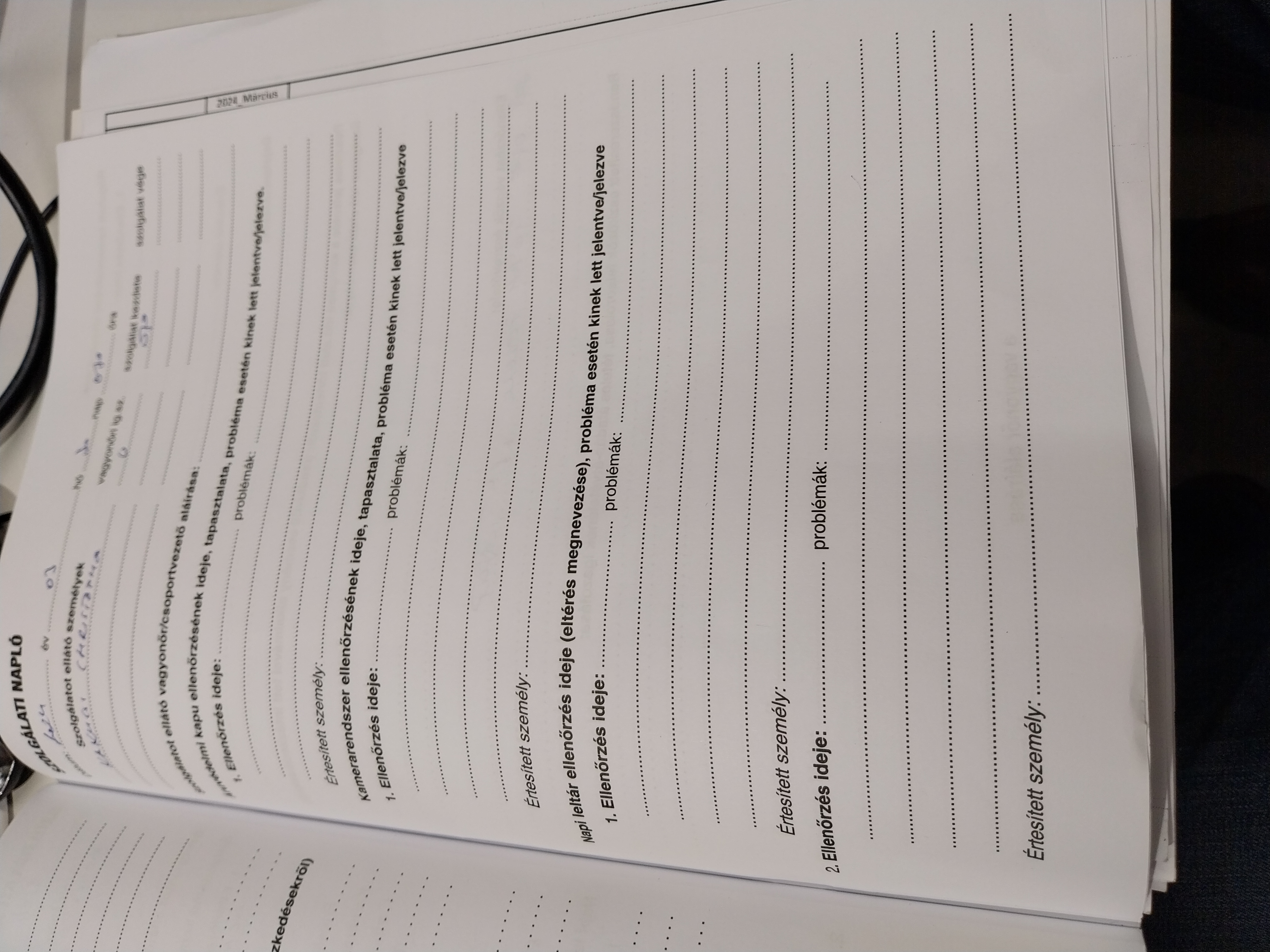 | Az őrzési helyre kiadott munkaeszközök megléte | Megfelel |