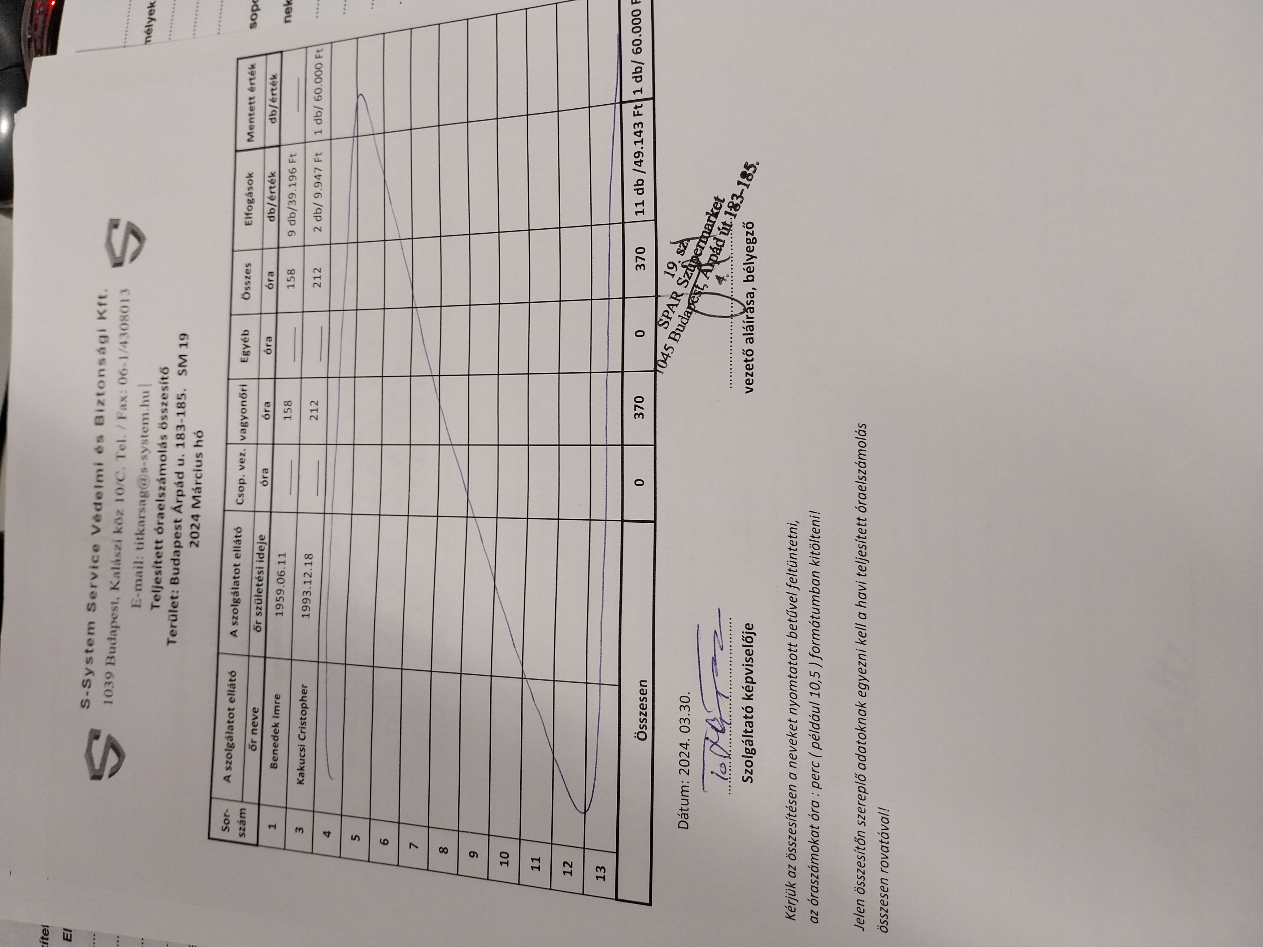 | Ellenőrzés helye | SPAR-SM 19 - Budapest IV. Árpád u. 183. |