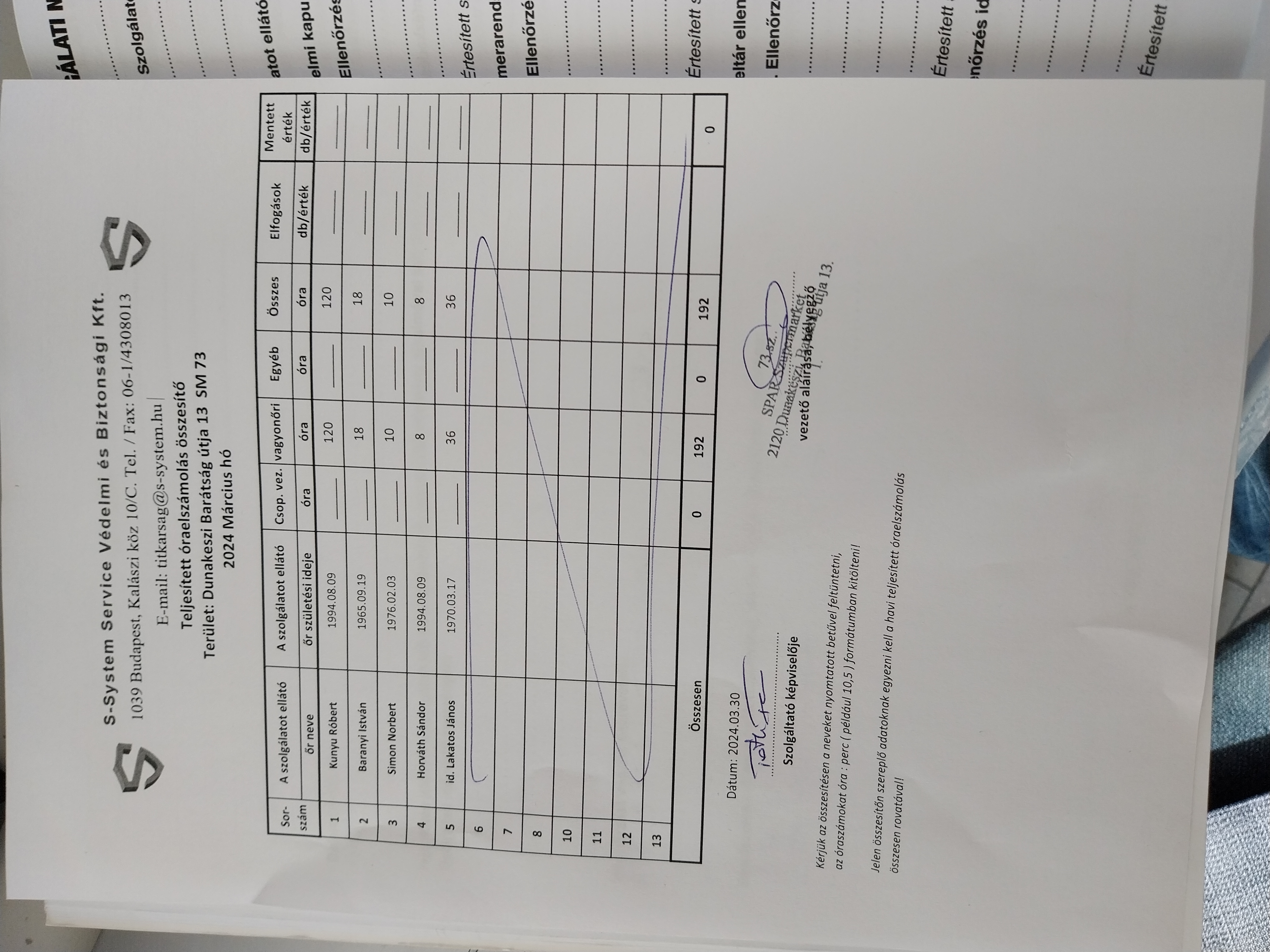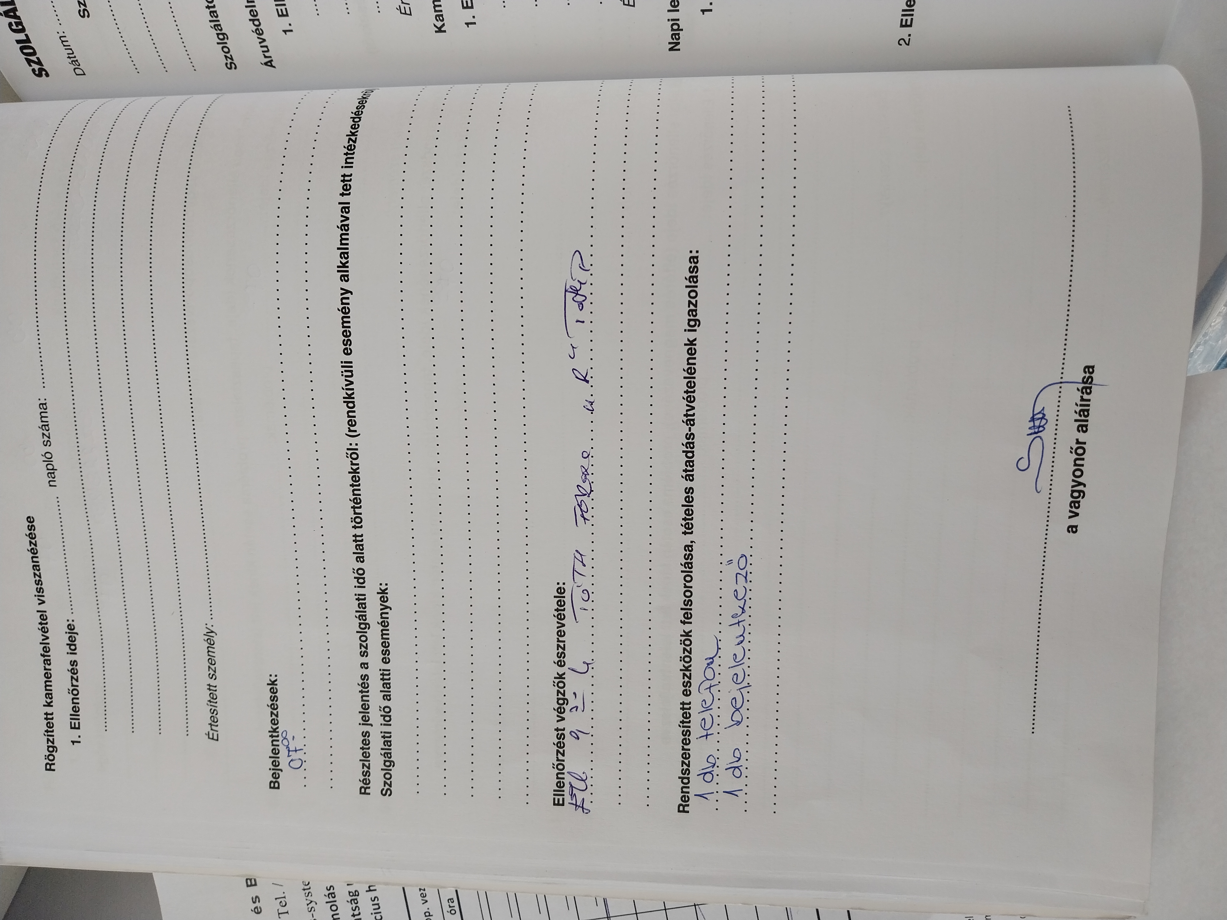| Az őrzési helyre kiadott munkaeszközök megléte | Megfelel |