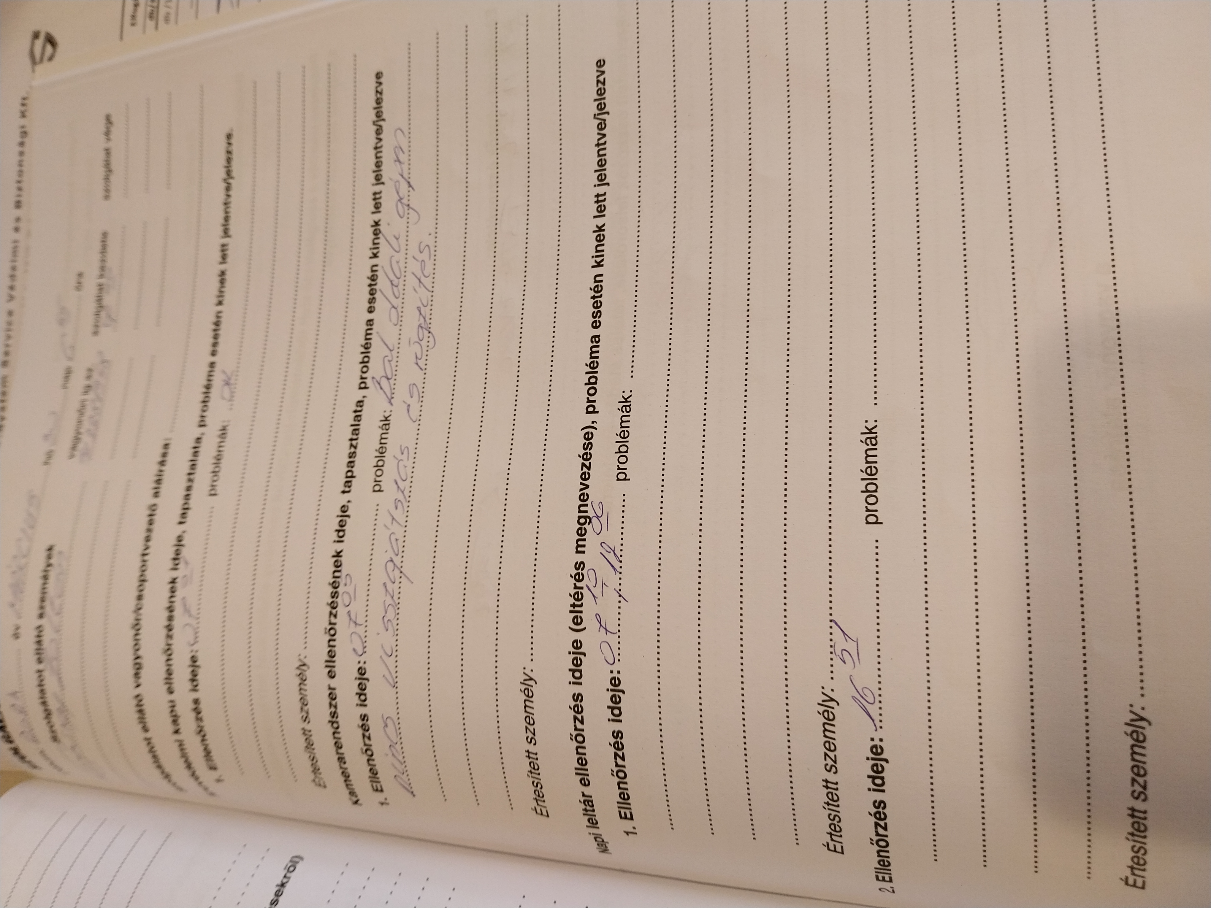 | Az őrzési helyre kiadott munkaeszközök megléte | Megfelel |