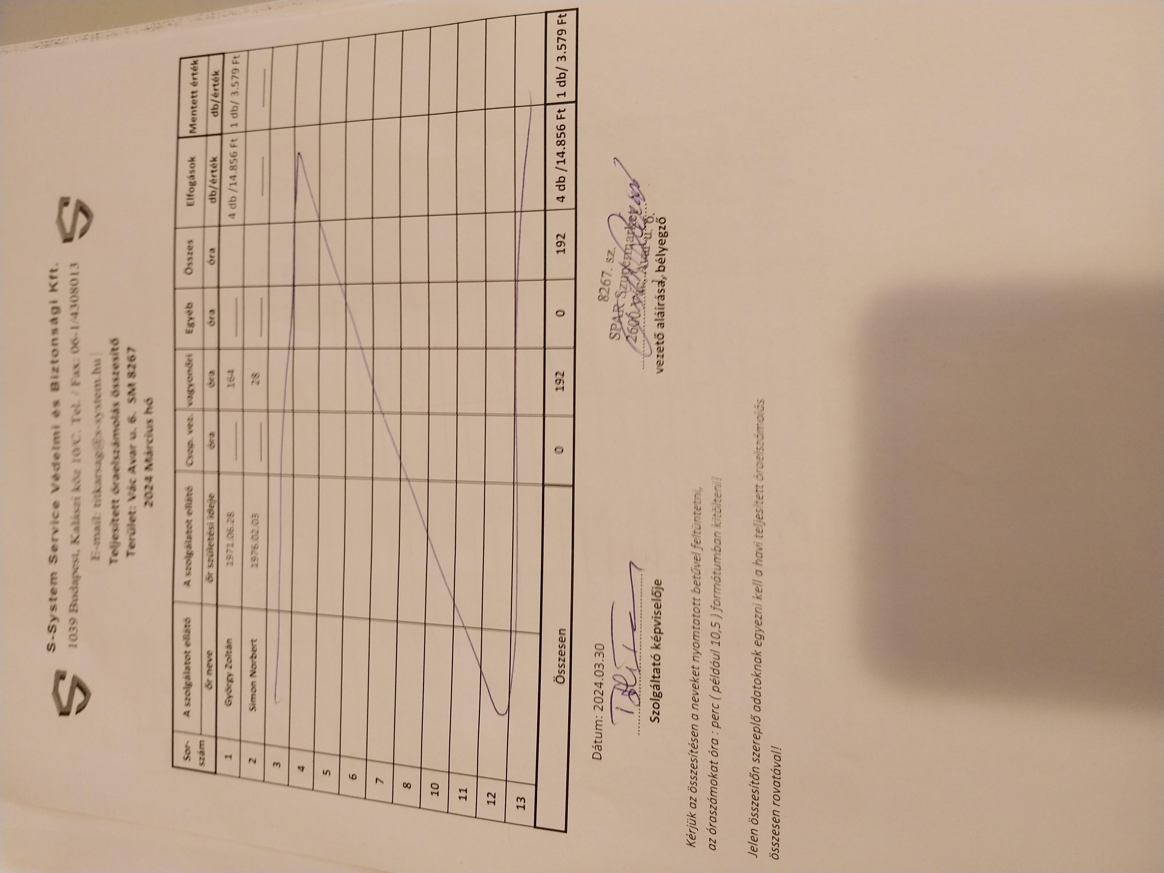 | Ellenőrzés helye | SPAR-SM 8267 Vác Avar u. 6. |
