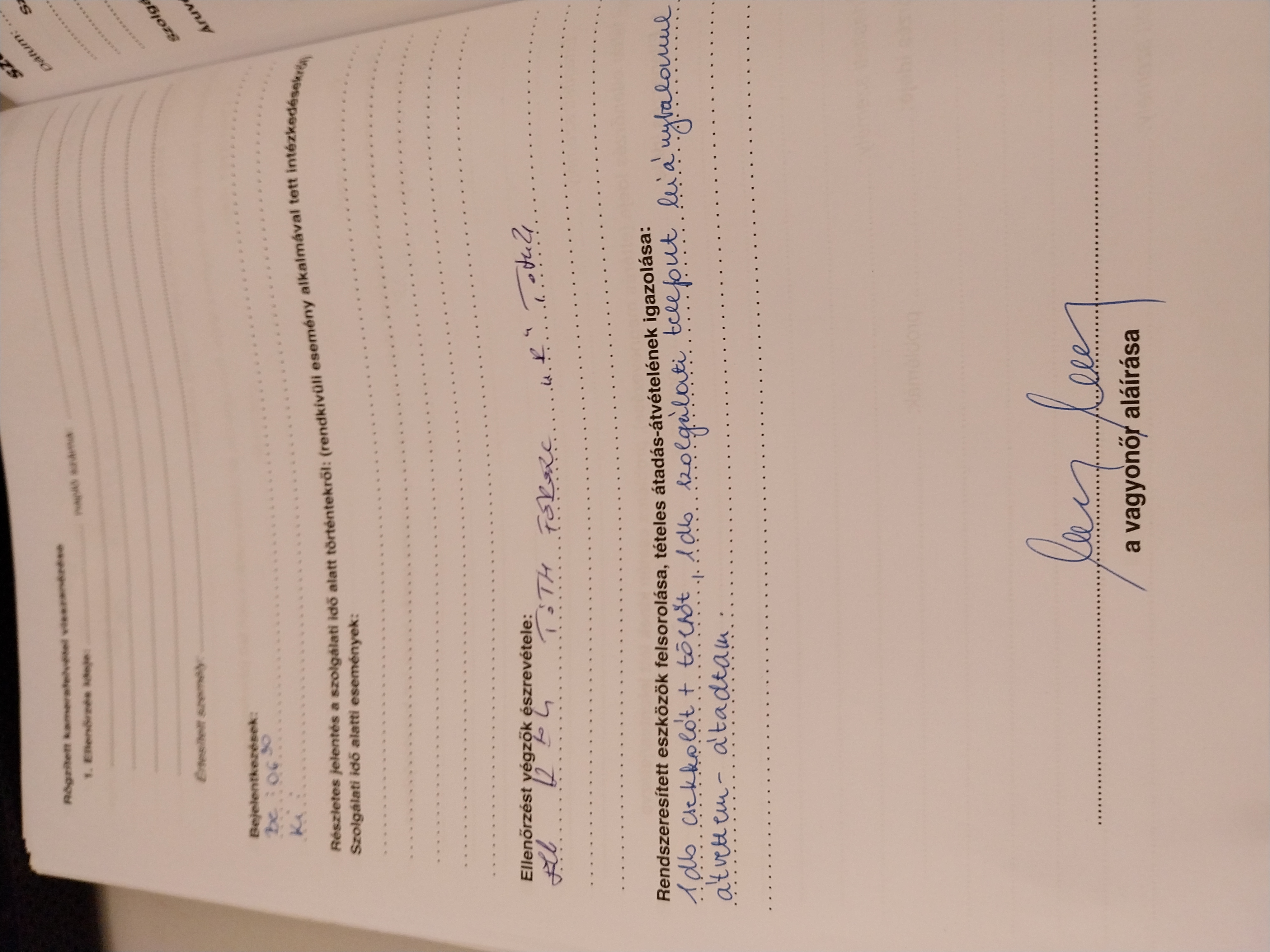 | Az őrzési helyre kiadott munkaeszközök megléte | Megfelel |