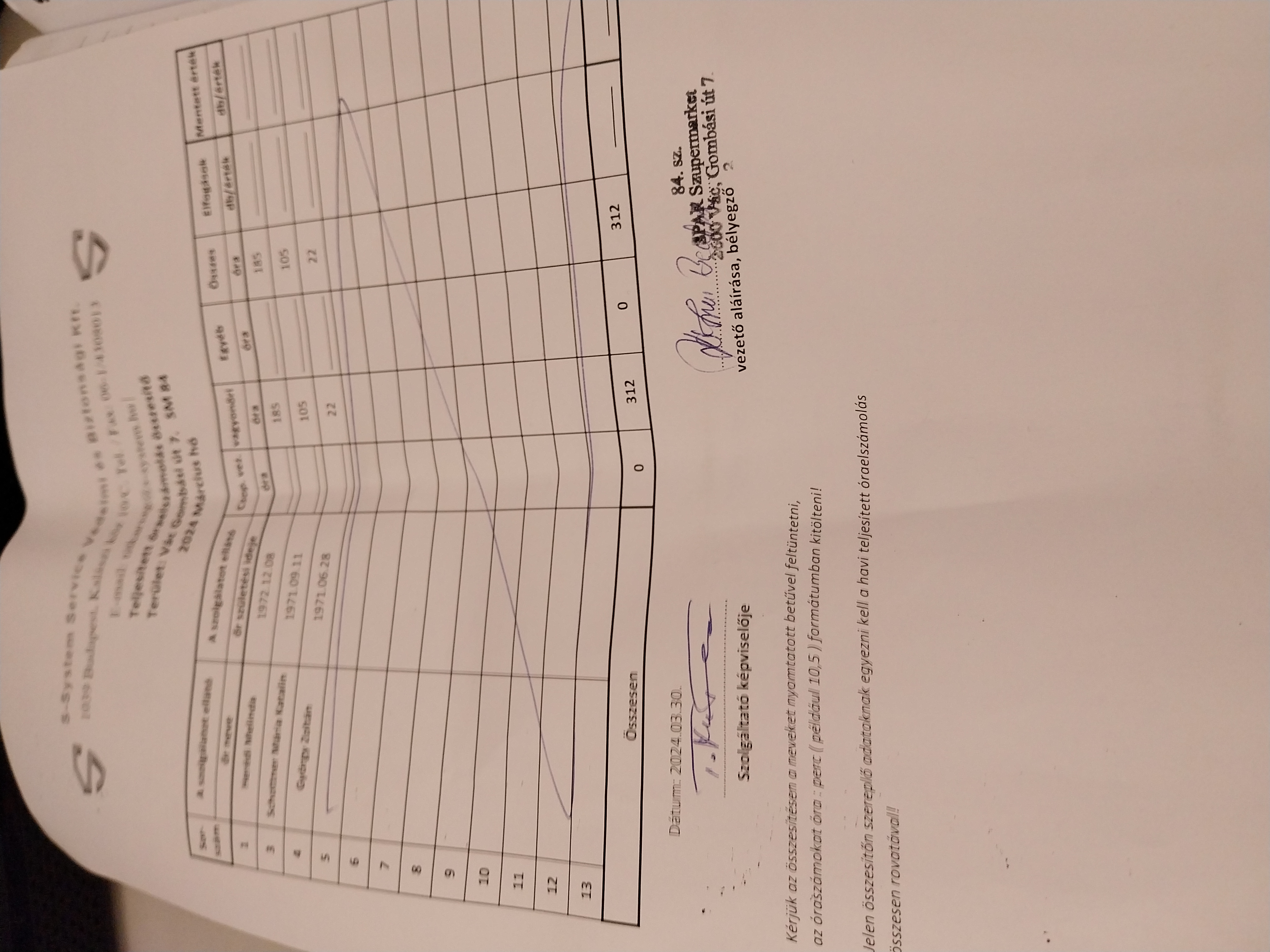 | Ellenőrzés helye | SPAR-SM 84 - Vác Gombási u. 7. |