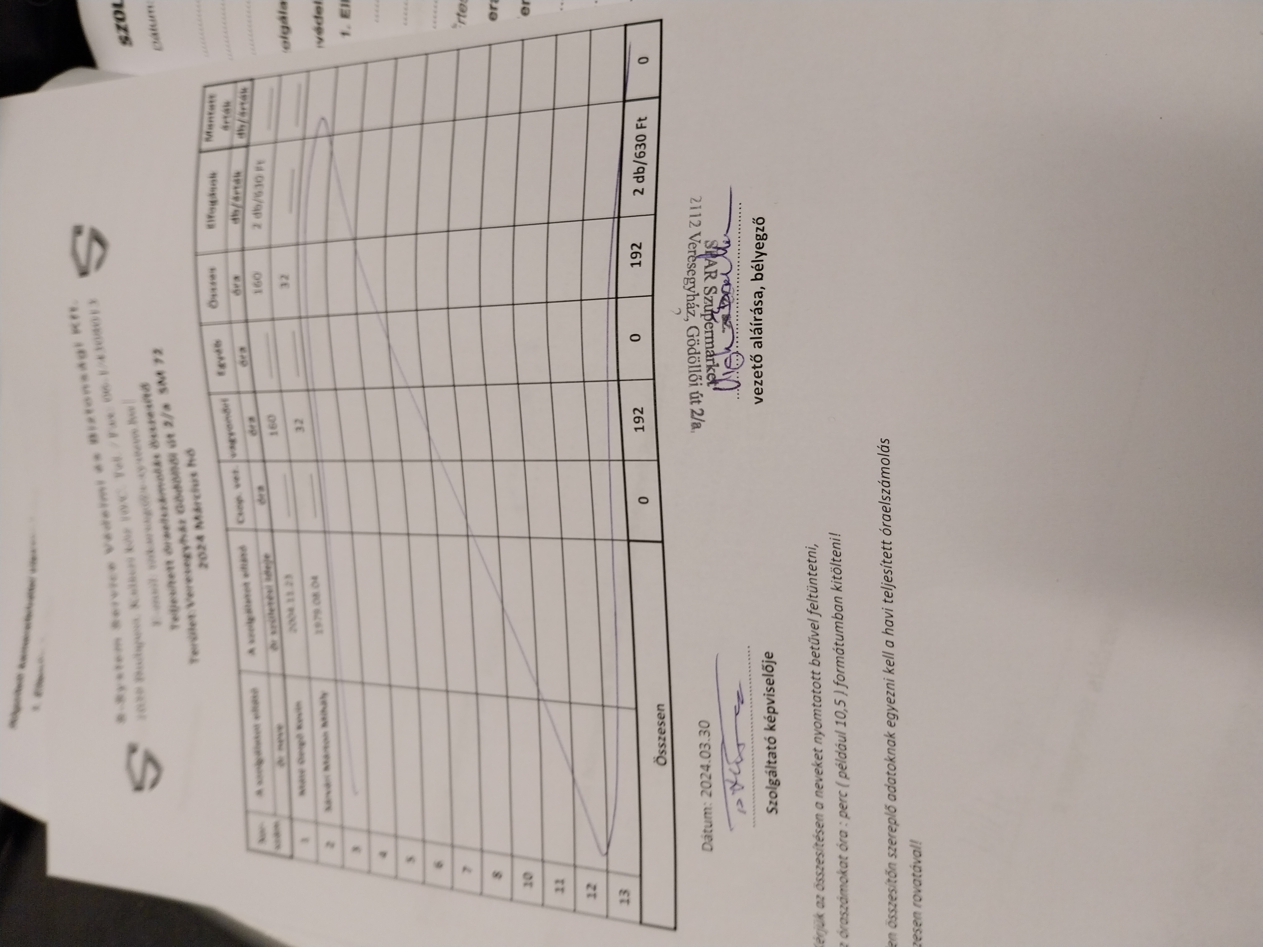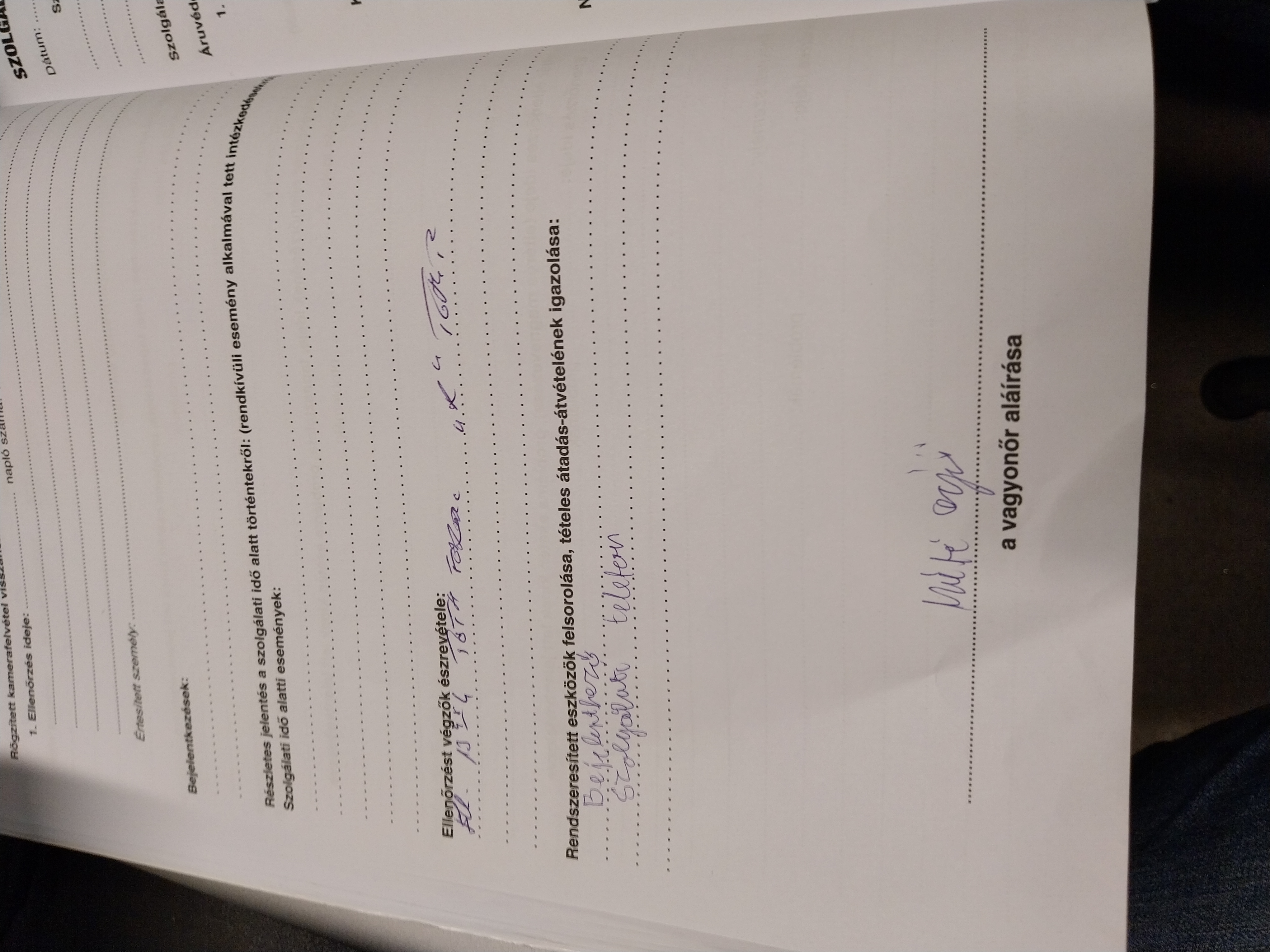 | Az őrzési helyre kiadott munkaeszközök megléte | Megfelel |