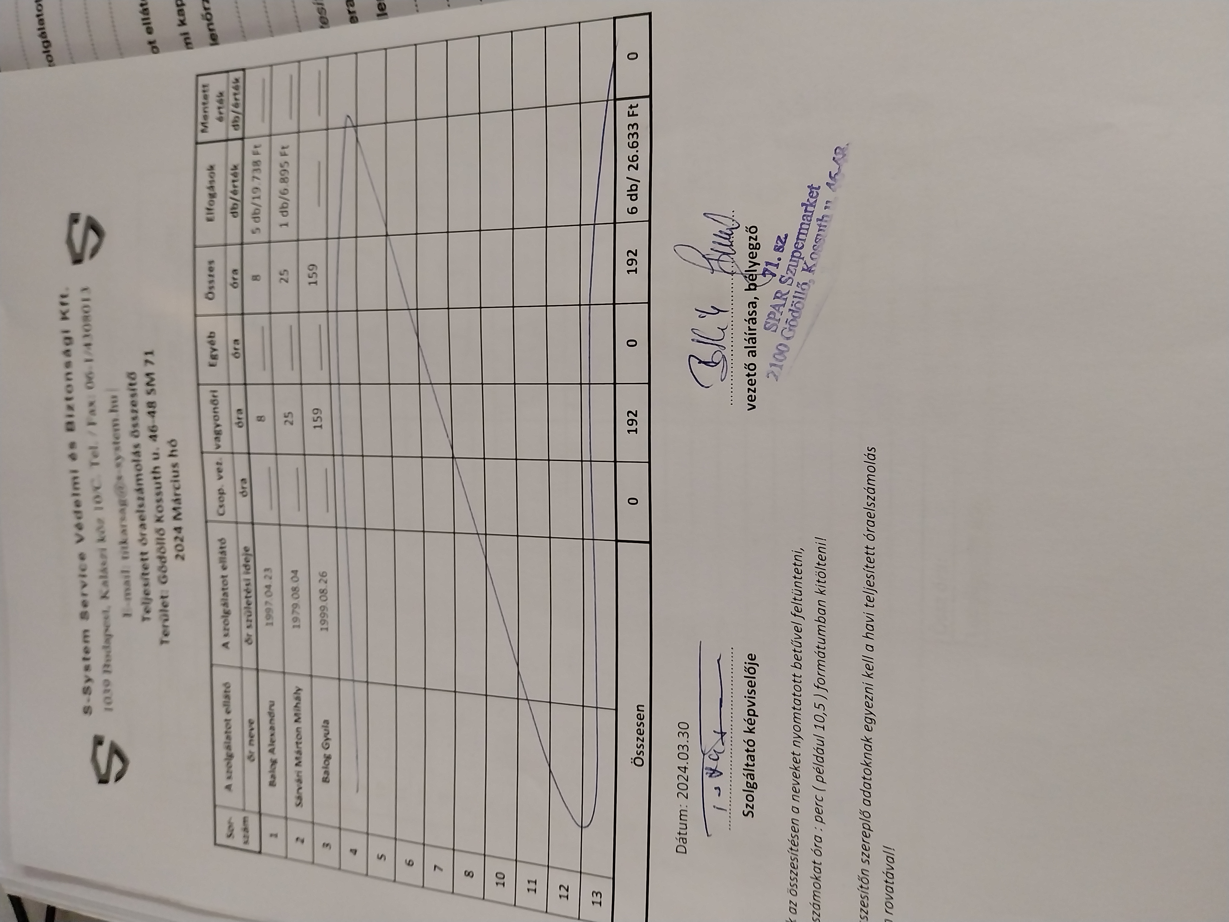 | Ellenőrzés helye | SPAR-SM 71 Gödöló Kossuth L. u. 46-48. |