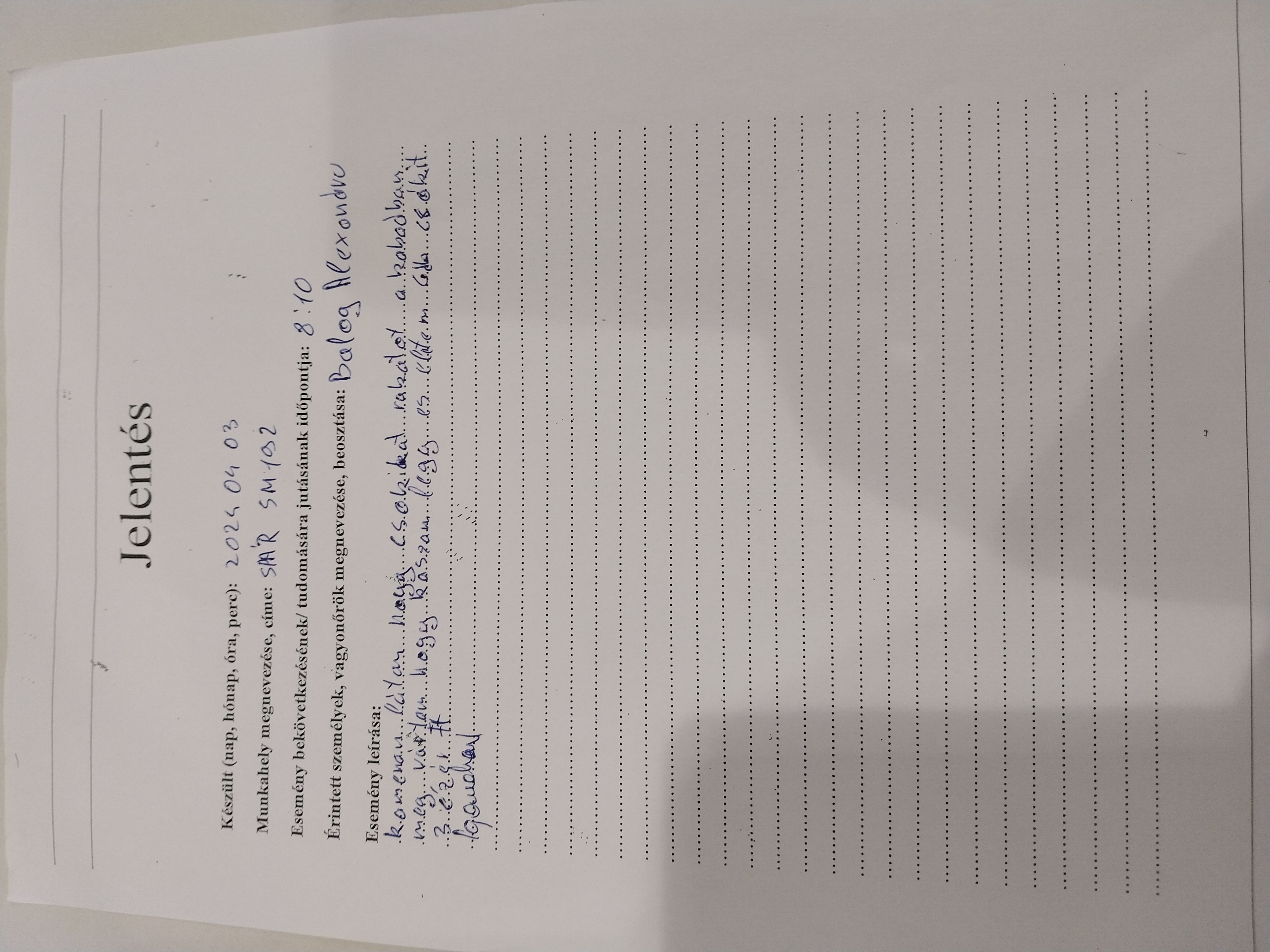 | Az őrzési helyre kiadott munkaeszközök megléte | Megfelel |