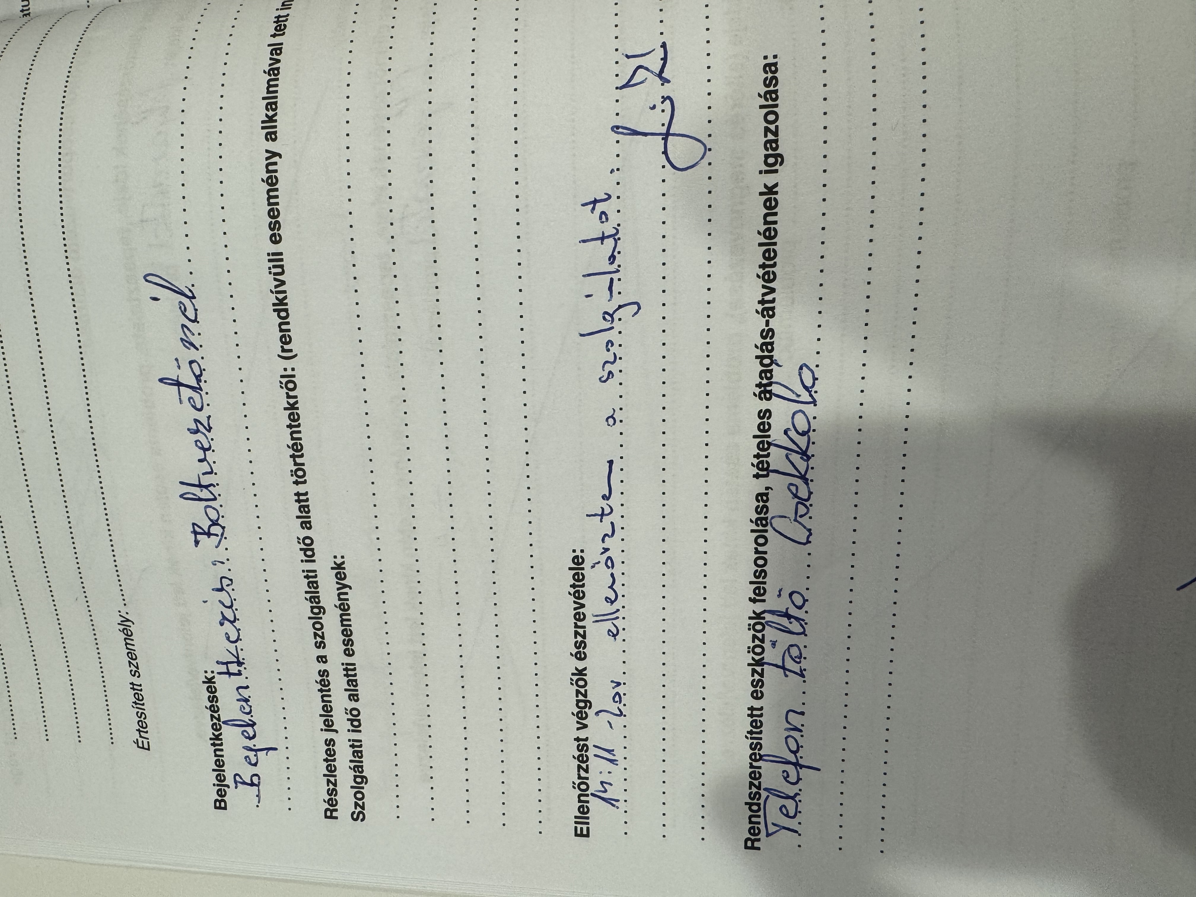 | Az őrzési helyre kiadott munkaeszközök megléte | Megfelel |