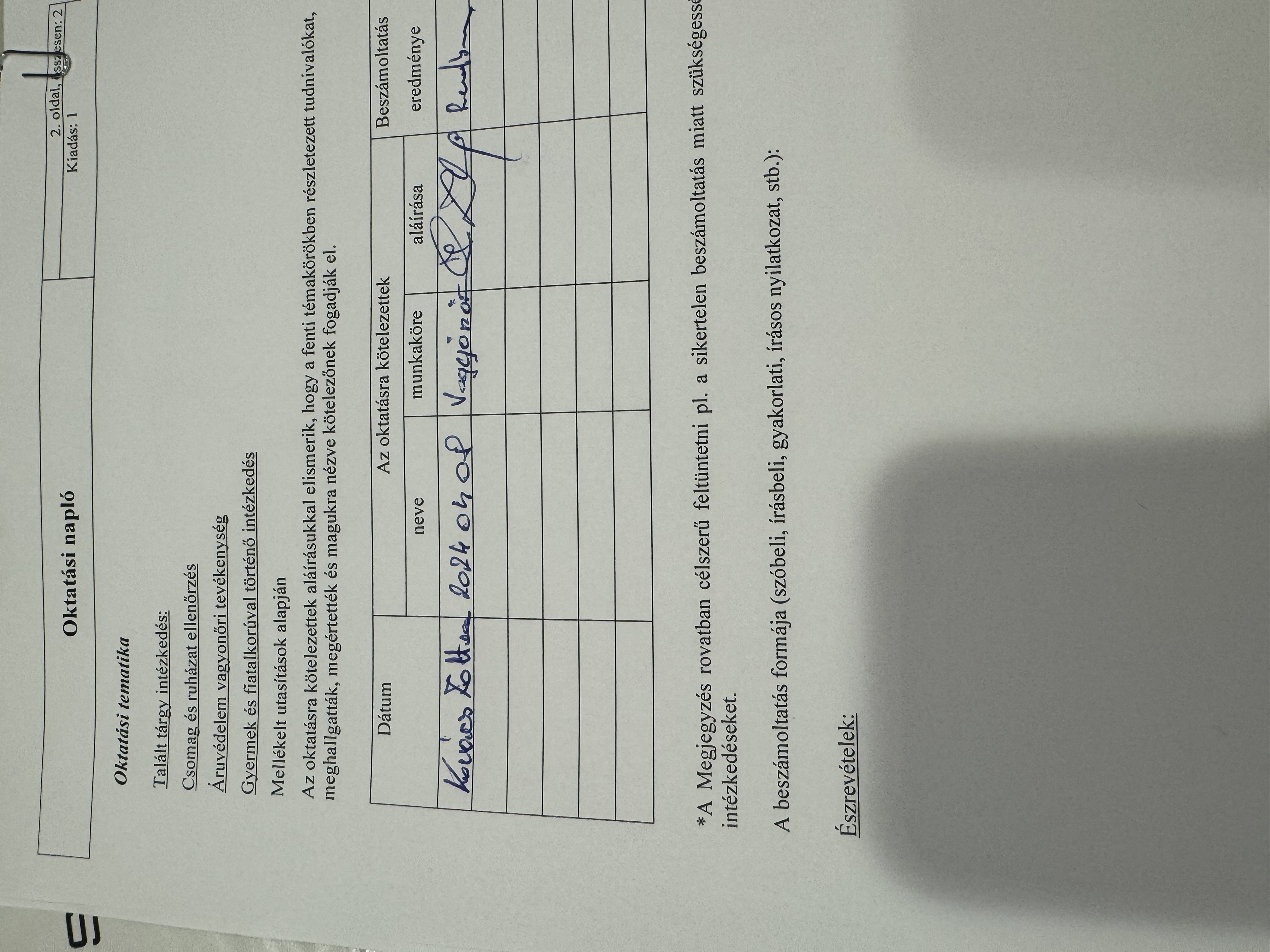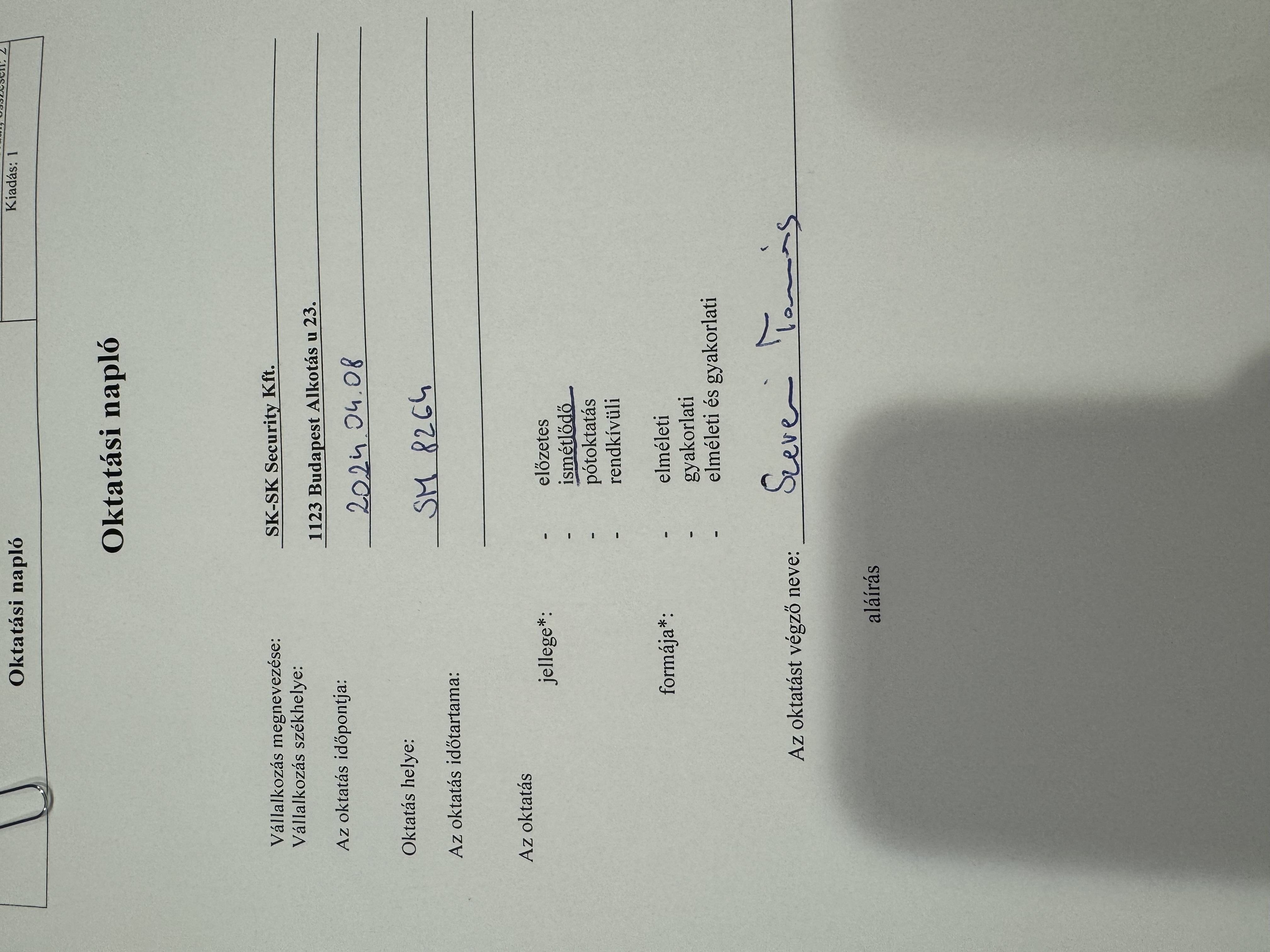 | Történt az ellenőrzéshez kapcsolódóan oktatás? | Nem |
