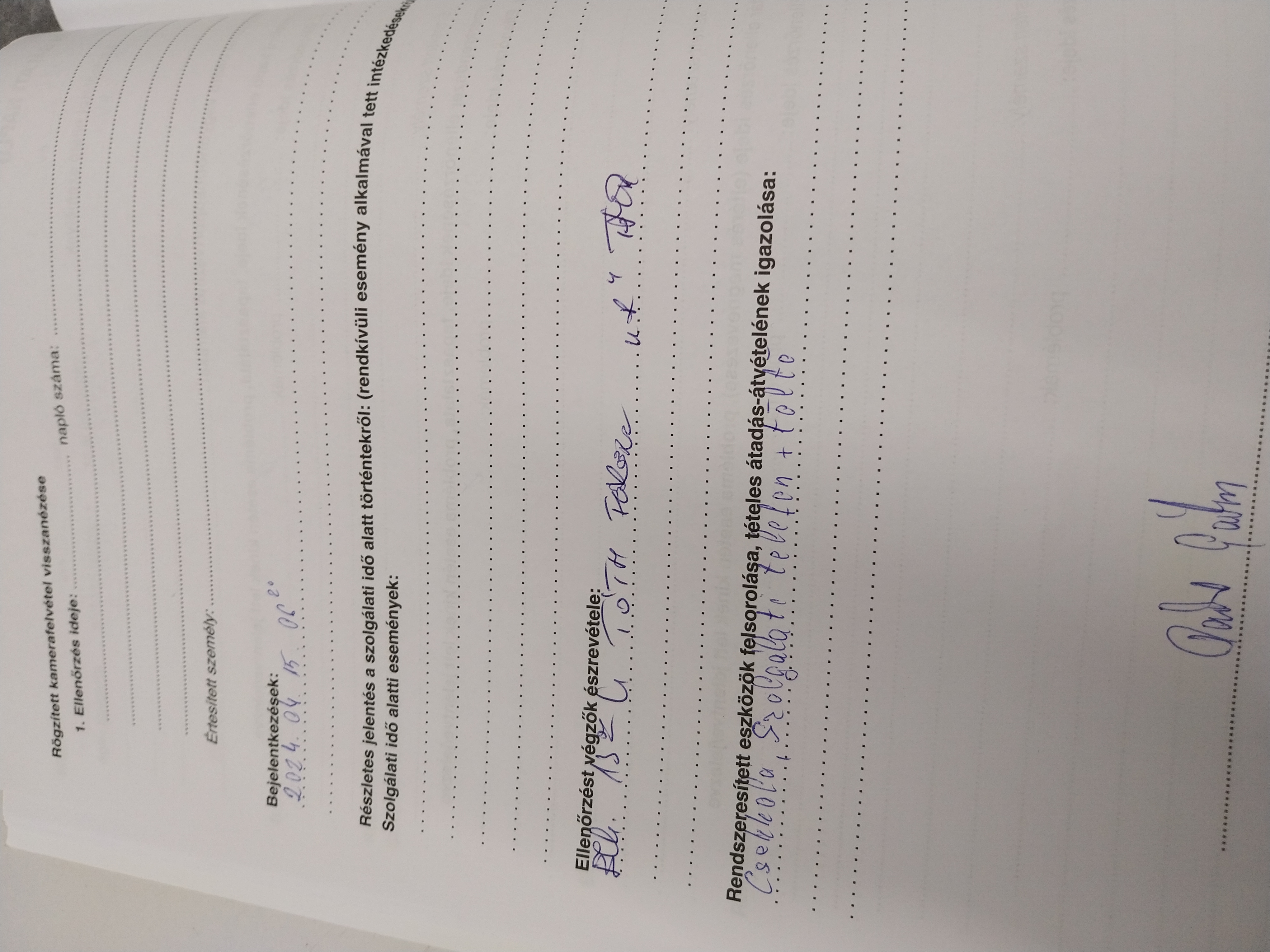 | Az őrzési helyre kiadott munkaeszközök megléte | Megfelel |