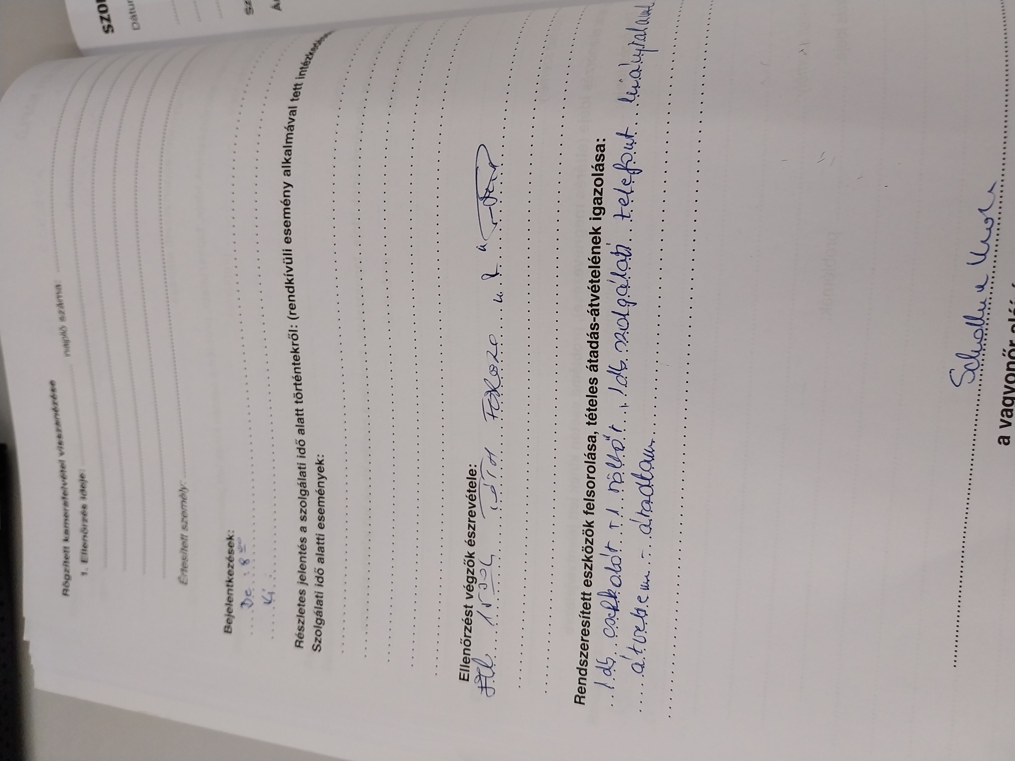 | Az őrzési helyre kiadott munkaeszközök megléte | Megfelel |
